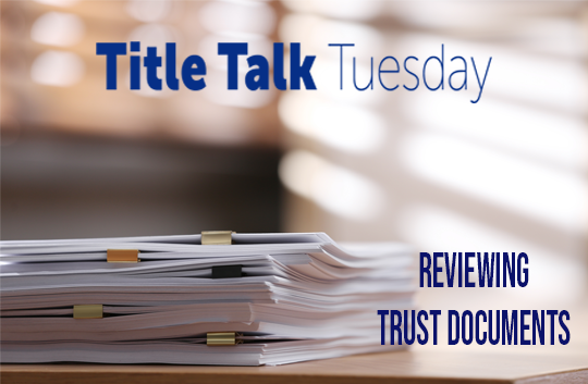 When a Trustee holds title to property on behalf of a Trust, additional due diligence and affidavits may be necessary to close. Today, we will discuss the circumstances under which it would be necessary to review the Trust Agreement and the additional requirements that may be necessary for a trustee to convey title.